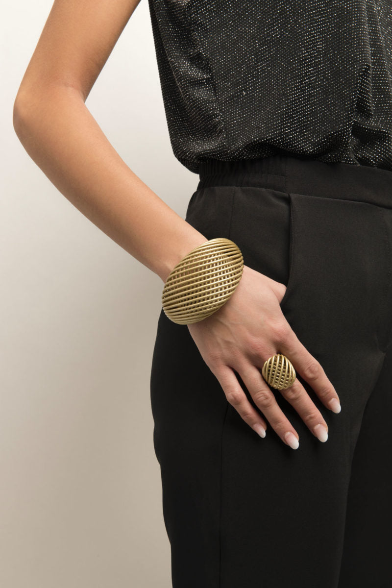 The collection has a strong visual impact characterized by soft and round shapes. Hand dyed and painted nylon.