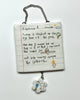 These handmade clay art tiles are hand drawn by Jesley and each are unique. They are made with air dry clay coated with resin for protection.