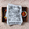 This tea towel is perfect for anyone who's big on Little Rock! The illustration was created by a pen-and-ink and watercolor artist from Arkansas, who is currently based in Durham, North Carolina. The artwork features well-loved and historic sites around town, like the River Market, Central High, the Old Mill, Pinnacle, the Junction Bridge, Villa Marre, and the Dreamland Ballroom, as well as favorite hangouts like the Root Cafe, Vino's, and Lassis Inn. These tea towels are large, absorbent, and 100% cotton. Machine wash warm and tumble dry.