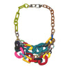 Woven mix of fun, matte and smoky translucent acrylic chain. Finished with gold metal swivel clasps.